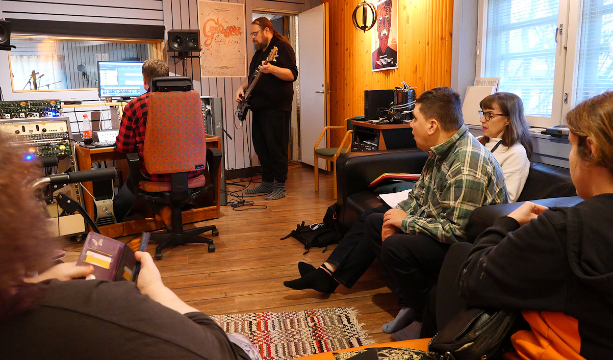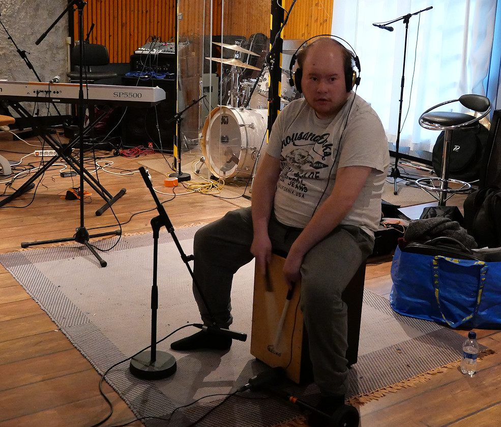 Nyt ollaan syöty ruoka ja myöhemmin juodaan kahvia vielä äänitetään lauluja täällä äänitys studiossa.